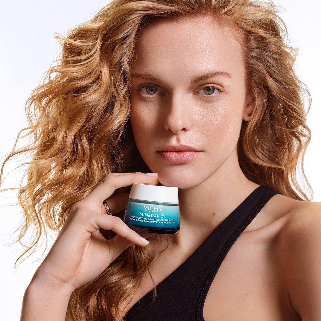 Påfør en generøs mængde af Minéral 89 100H Fugtboostende Næringsrig Creme ansigt og hals morgen og aften efter Minéral 89 Booster Serum.