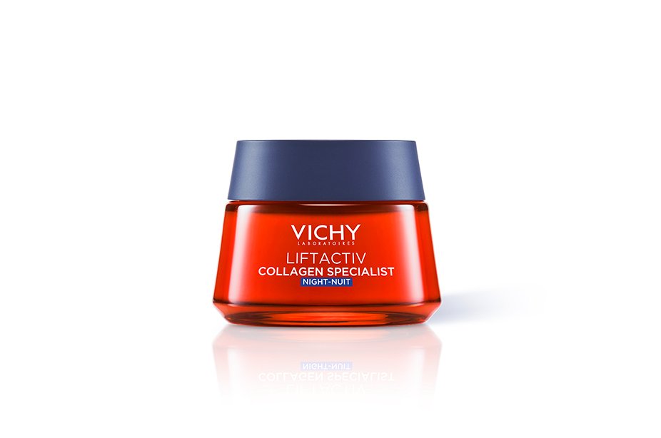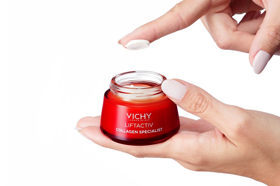 Prøv eksempelvis Vichys Liftactiv Collagen Specialist Dagcreme, der giver fugt i 48 timer. Denne creme indeholder niacinamid, som er kendt for at give en mere jævn hudtone. Fordel ansigtscremen med dine fingre i cirkulære bevægelser.