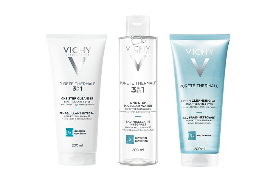 Hos Vichy kan du finde ansigtsrens til alle hudtyper- og behov. Prøv eksempelvis Vichy Pureté Thermale Renseskum til alle hudtyper, der skånsomt renser huden for urenheder og makeup.